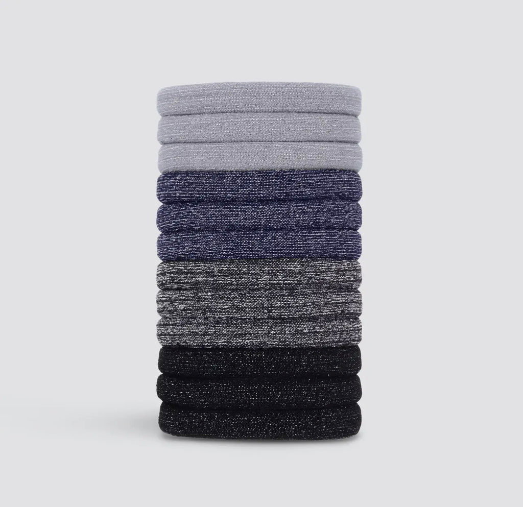 "Put on the glitz wand and jazz up your everyday ponytails, braids, and buns with Kitsch Eco-Friendly Glitter Nylon Elastics. These soft and stretchy hair ties are everyday must-haves, crafted to give you a tight, all-day hold while effortlessly gliding through your hair without tugging, snagging, or creasing. Plus, they’re made from 60% recycled nylon, meaning they’re kind to your hair and the environment! Choose from two sets of subtly shimmery neutrals to add a little something special to your favorite outfits.