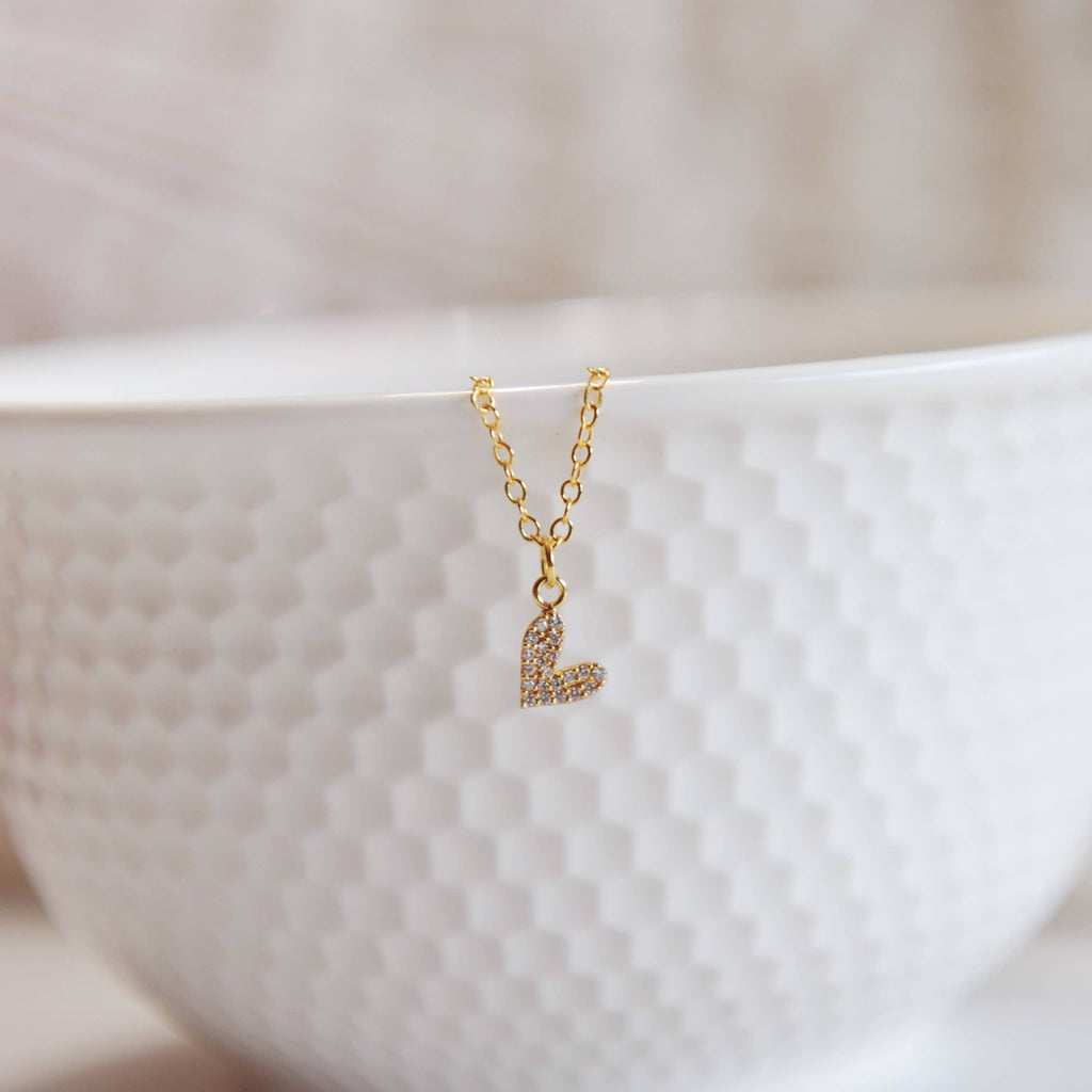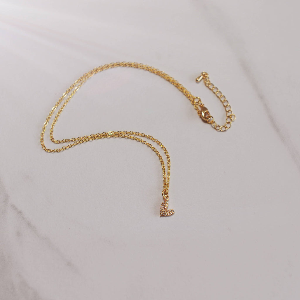 This 14k gold plated encrusted heart charm is an exquisite piece that you will want to wear all the time. This dainty heart necklace will add a special touch to everyday outfits.