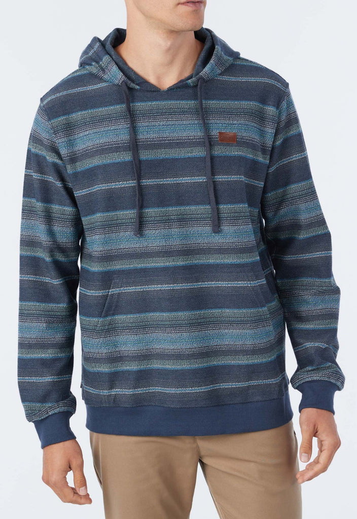 A mid-weight pullover hoodie that has a soft knit feel, yarn dye stripe design and relaxed fit.