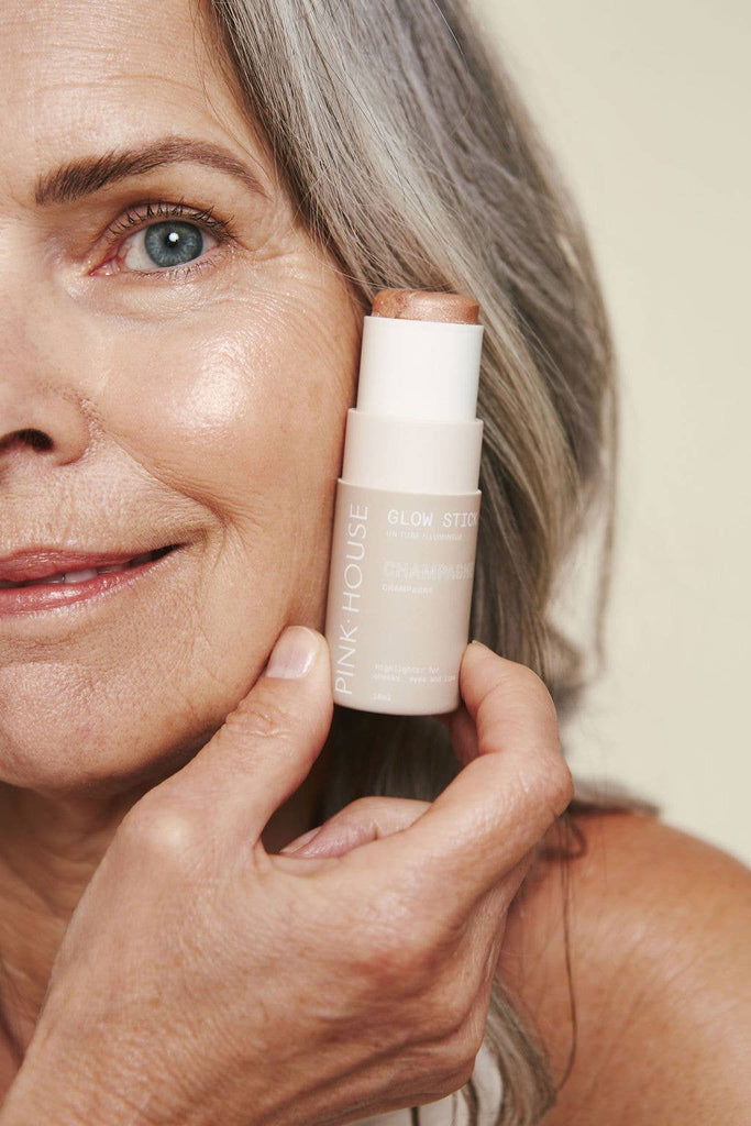 Enhance your natural glow with our multi-use, creamy Glow Sticks. Our Glow Sticks have a slight shimmer that gives skin an instant, radiant glow. Buildable in nature, they can be used for that no-makeup makeup look on bare skin or layered on top of foundation for a bold look. Completely natural, vegan, and cruelty-free, this product is infused with three types of oils to keep skin moisturized while giving a dewy finish. Champagne is a universally flattering shade that creates a warm, sun-kissed glow. A deep gold tone with a pearlescent finish, it gives cheeks a luminous pop while letting your natural beauty shine through.