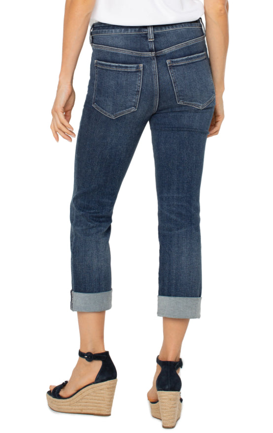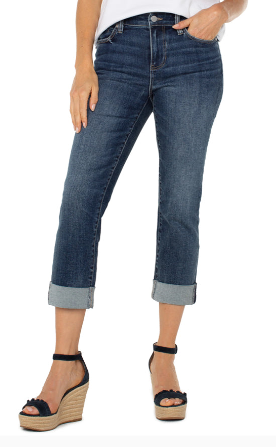 Our mid-rise Charlie Crop showcases a wide cuff detail to show off your favorite pair of shoes! This denim has vintage characteristics yet still has great stretch and recovery to take you from day to night.