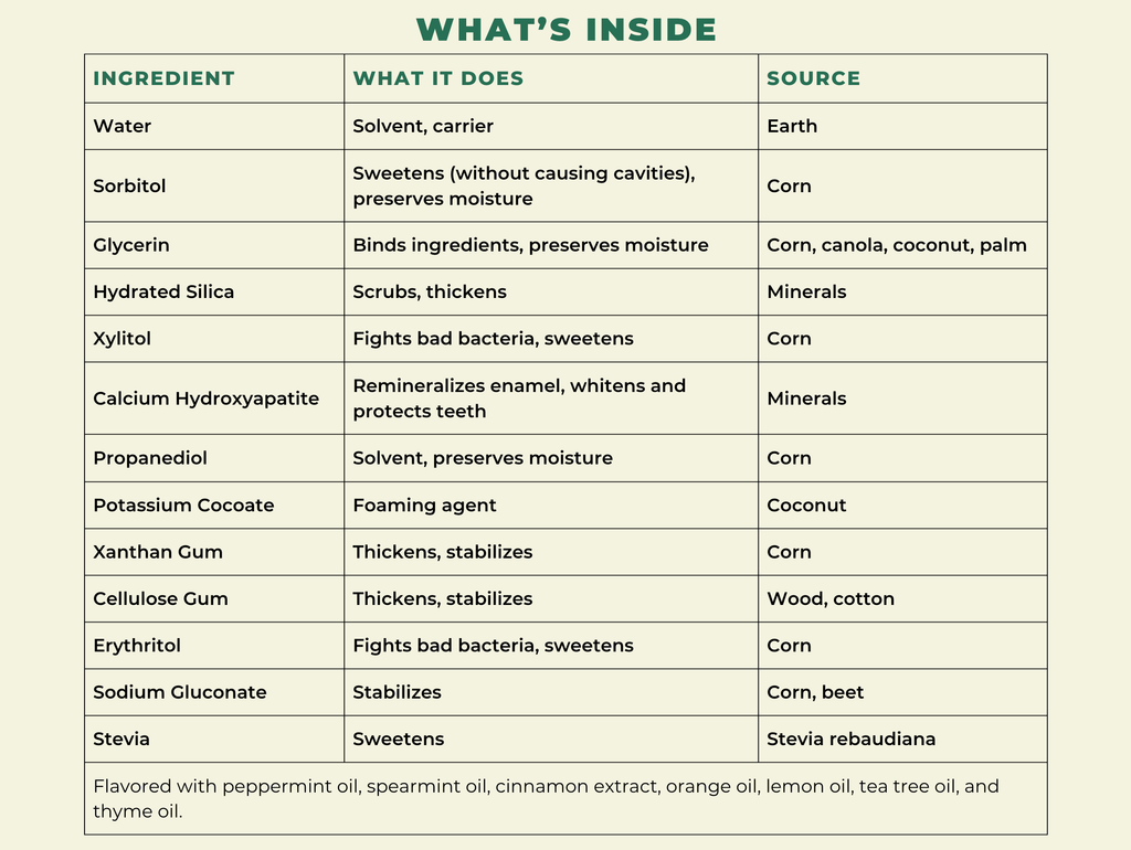 Whiter, stronger, and healthier teeth with 10% micro-hydroxyapatite (HA) & natural ingredients - no fillers ever.