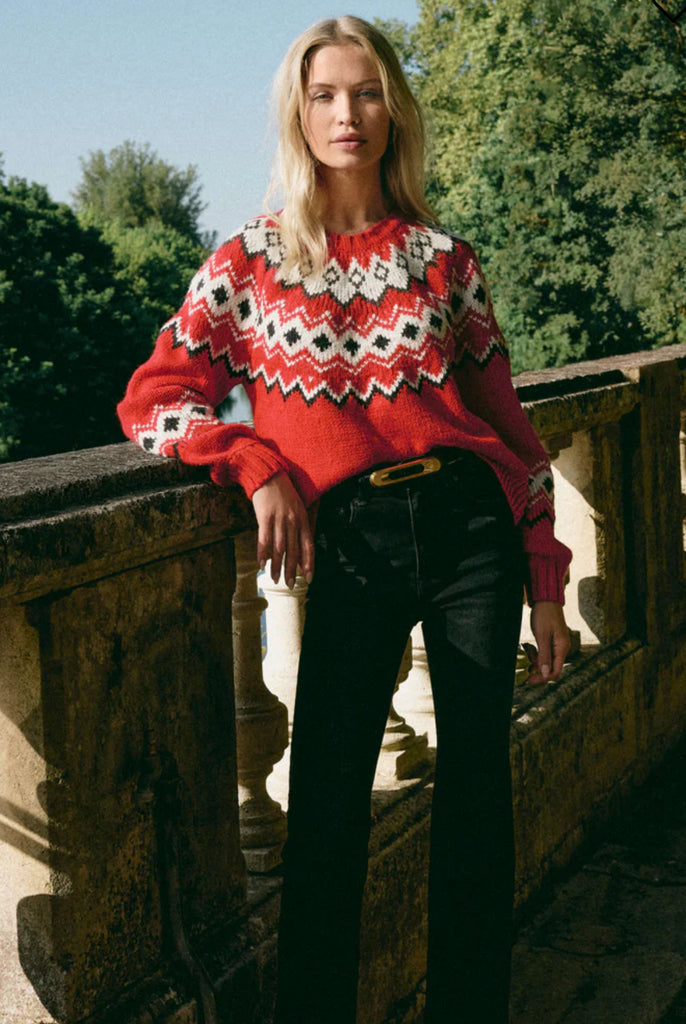 Classic Fair Isle meets cozy yarns in this midweight knit designed for colder days. Relaxed and easy to style, it’s a timeless seasonal favorite.